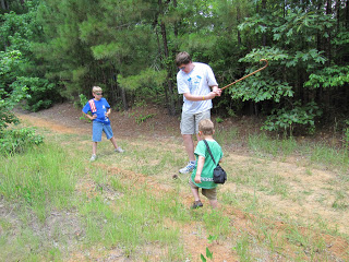 We did make it to Pensacola late last night. It was a long day of diversions, really. We started with the Louisiana Highpoint, Mt. Driskill, near Arcadia. It’s under 600′ and one of the lowest highpoints in the US. (We’ll bag the very lowest here in Florida today. Britton Hill, near DeFuniak Springs, is only 345′. Since it’s a drive-up, the rain won’t impede that lofty goal.) Mt. Driskill is 1.8 miles round-trip, but we took an hour to summit. It was 95 degrees, a beautiful day, and we just took our time. Henry did fine, though he is sporting an impressive green and yellow bruise around his ankle now. It was a good idea for him to take the cane on the walk. Not only did it provide some insurance / stability, it inspired an impromptu game of pinecone croquet! Since our trip means we’ll miss the Sacred Heart Croquet Tournament this coming weekend, I guess we had to make our own. (And if the camera cord were working, you’d have a picture.) Fourth of July, and Sunday, we missed being at Mass this morning, so of course we had to listen to our Freedom Choir CD. It fit.